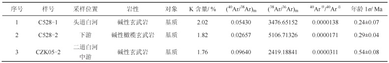 表 1 本次K-Ar测年结果 Table 1 The K-Ar ages of basalt |