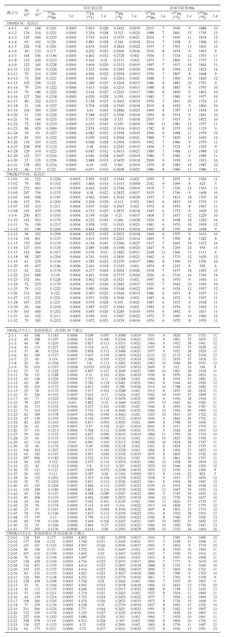表 1 锆石U-Pb测年结果 Table 1 Results of U-Pb dating of zircon samples |