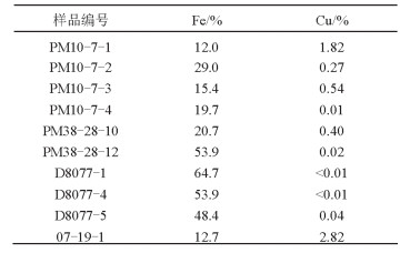 表 1 乌鲁穷磁铁矿Fe、Cu元素分析结果 Table 1 Analytic results of Fe, Cu element (%) from the Wuluqiong iron deposit |