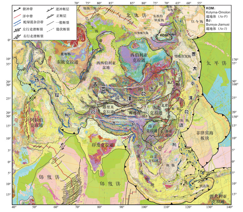 任纪舜, 牛宝贵, 王军, 金小赤, 谢良珍. 2013. 国际亚洲地质图(1:5000000)[M]. 北京: 地质出版社.