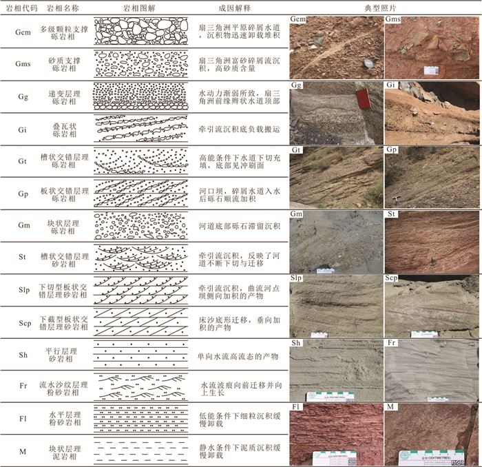 图 3 准噶尔盆地南缘中、上侏罗统典型岩相类型 Fig. 3 Typical lithofacies of the Middle-Upper Jurassic in southern Junggar Basin |