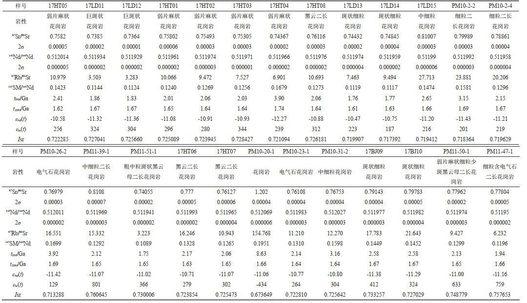 表 2 新兴花岗岩Sr-Nd同位素数据 Table 2 Sr-Nd isotopic data of the Xinxing granite |