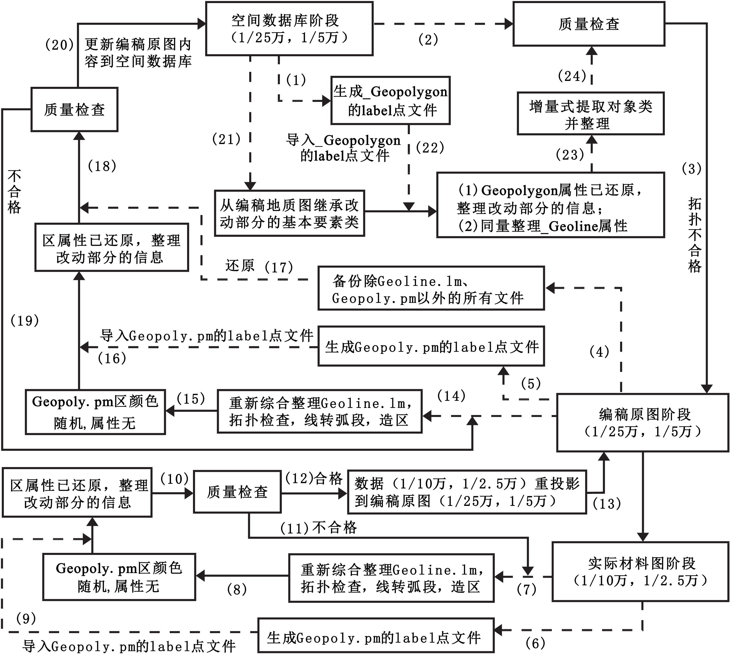 图 2 企水镇幅(F49E020008) 1∶50 000地质图数据库建库流程图 |