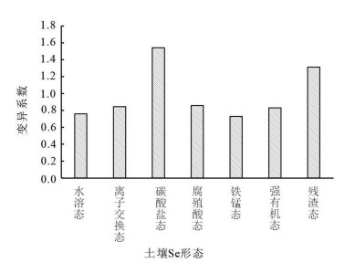 图 4 不同形态硒占总量相对比例的变异系数 Fig. 4 Coefficient of variation of the relative proportion of different forms of selenium in total |