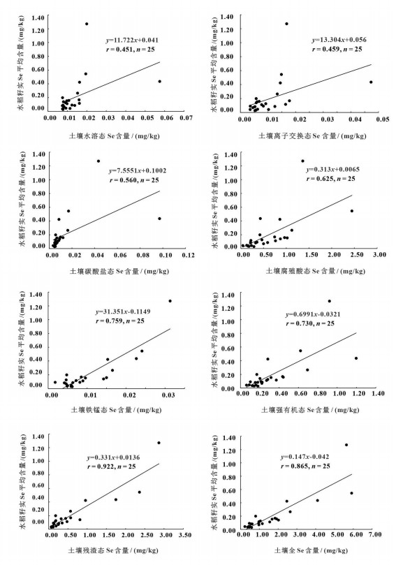 图 7 水稻籽实硒的含量与土壤硒形态散点图 Fig. 7 Relationship between Se content in rice seeds and Se forms in soil |