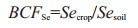 其中,BCFSe表示硒元素的富集系数;Secrop为水稻籽实的硒含量,单位为mg/kg,Sesoil为水稻根系土的全硒含量,单位为mg/kg,将水稻籽实中的硒含量与水稻根系土壤中全硒的含量之比表示其富集硒元素的能力高低。