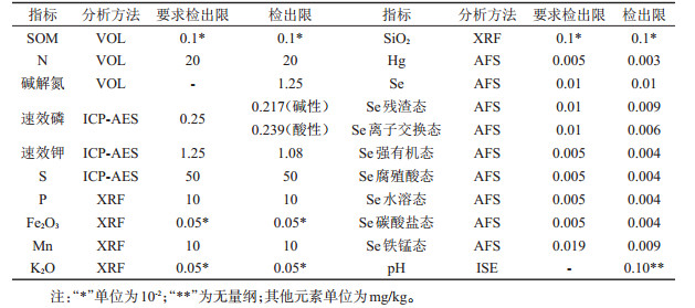 表 1 元素分析方法与检出限 Table 1 Element analysis methods and detection limit |