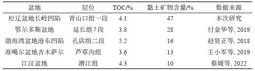 表 1 松辽盆地与国内其他含陆相页岩矿物成分对比数据 Table 1 Comparison data table of mineral composition of domestic continental shale between Songliao Basin and other Basins |