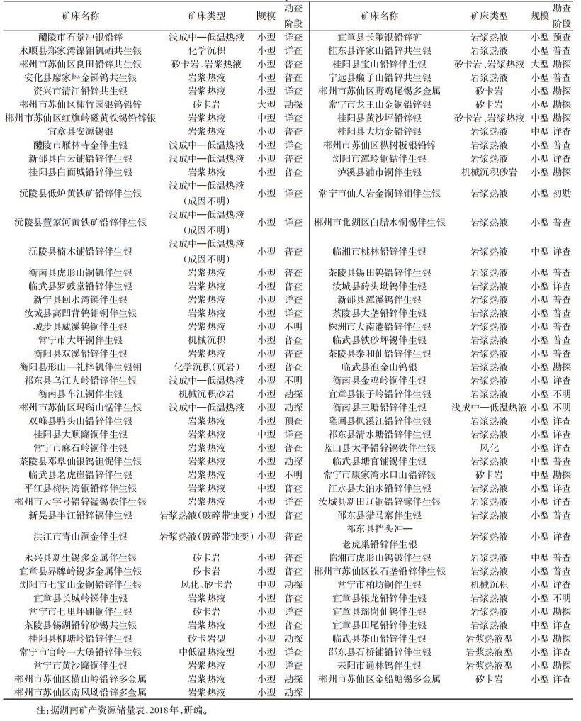 表 2 湖南省银矿床一览 Table 2 List of silver deposits in Hunan Province |