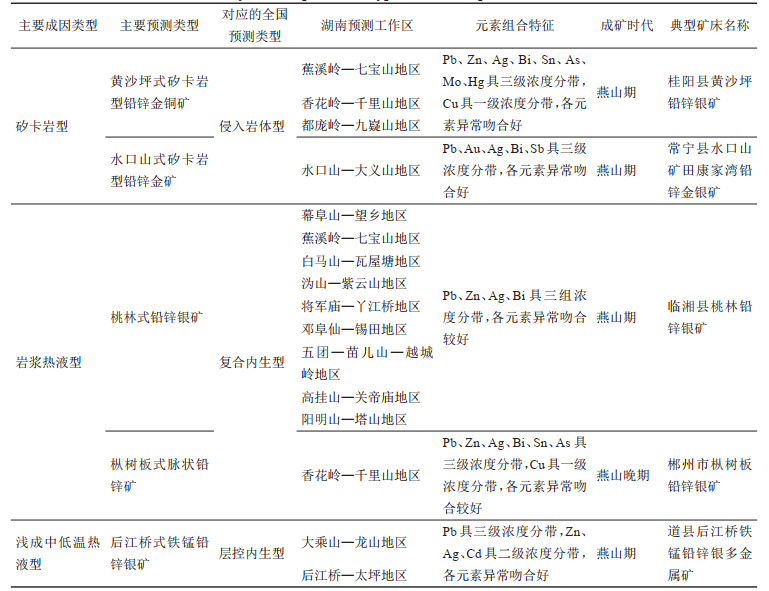 表 3 湖南银矿床主要预测类型 Table 3 Summary of main prediction types of silver deposits in Hunan Province |