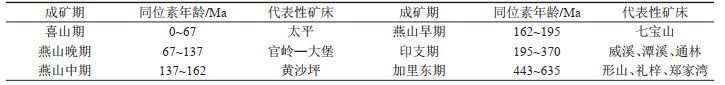 表 4 湖南银矿成矿期划分简表 Table 4 Brief table of metallogenic epoch divisions of silver deposits in Hunan Province |