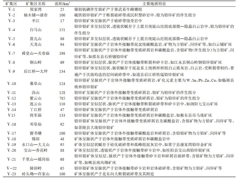 表 5 湖南银矿矿集区划分表 Table 5 Division table of silver ore concentration areas in Hunan Province |