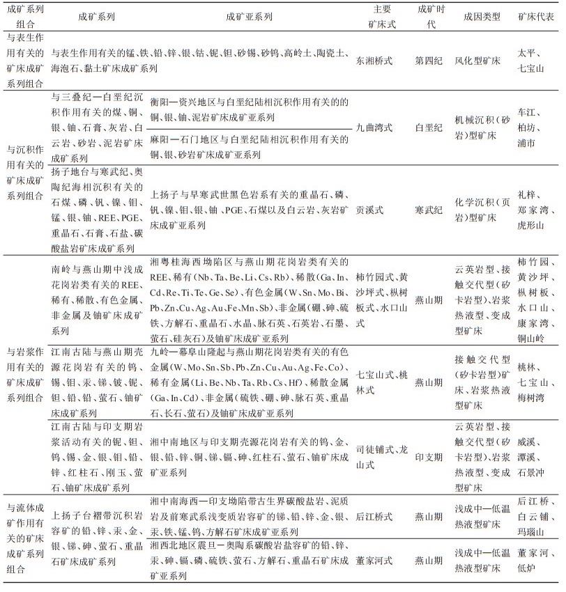 表 6 湖南省银矿床成矿系列划分一览表 Table 6 List of metallogenic series of silver deposits in Hunan Province |