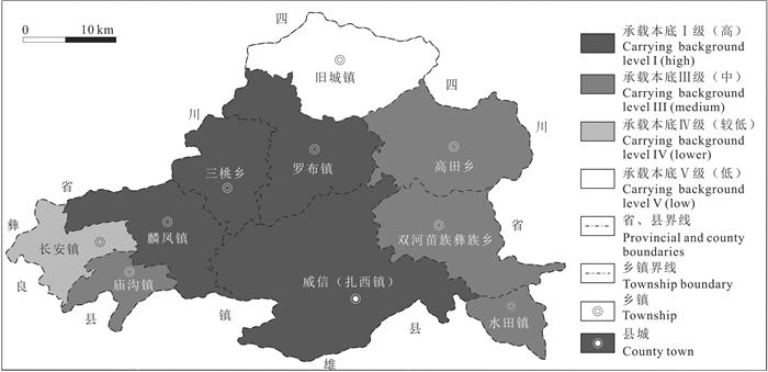 图 2 威信县煤矿资源承载本底评价图 Fig. 2 Evaluation chart of coal mine resources carrying background in Weixin County |