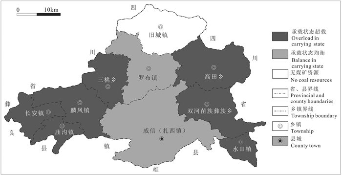 图 5 威信县煤矿资源承载状态评价图 Fig. 5 Evaluation chart of coal mine resources carrying state in Weixin County |