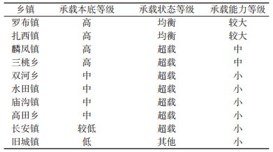 (2)虽然威信县各乡镇煤矿资源自然禀赋较好,承载本底普遍为“中”和“高”级别,但承载状态堪忧。威信县10个乡镇中没有承载状态为“盈余”的乡镇,大多数乡镇煤矿资源承载状态为“超载”,超载率占据了70%,仅有2个乡镇的承载状态为“均衡”(罗布镇、扎西镇)。威信县煤矿资源承载能力同样不太乐观,10个乡镇中,没有煤矿资源承载能力“大”的乡镇,承载能力“较大”的乡镇仅有2个(罗布镇和扎西镇),承载能力“中”的乡镇有2个(三桃乡和麟凤镇),承载能力“小”的乡镇则达到了6个(双河乡、水田镇、庙沟镇、长安镇、高田乡、旧城镇)。