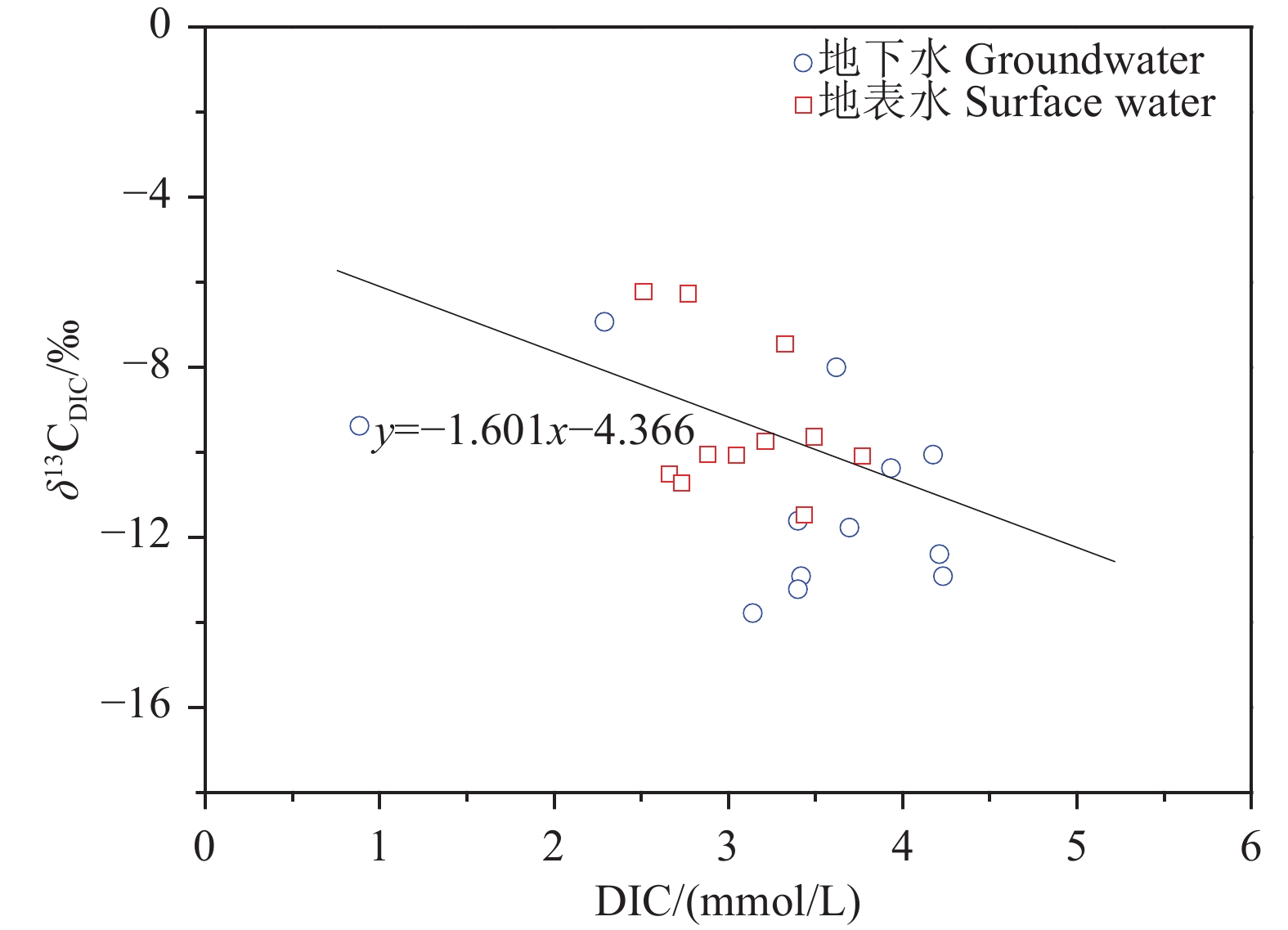 图 12 湿地水体DIC与δ13CDIC的关系 Fig. 12 Relationship between DIC and δ13CDIC in wetland water |