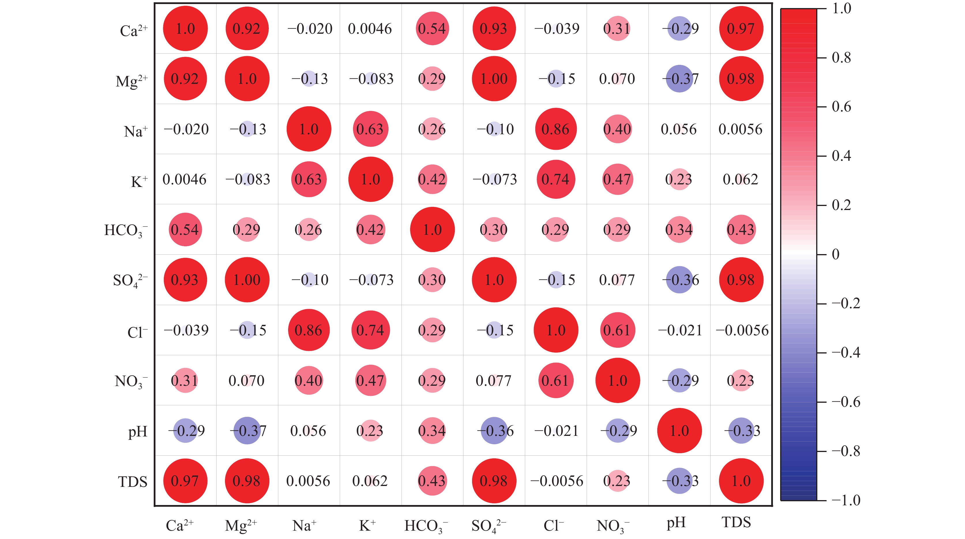 图 4 湿地水体离子间的相关性矩阵图 Fig. 4 Correlation coefficient diagram of wetland water ions |