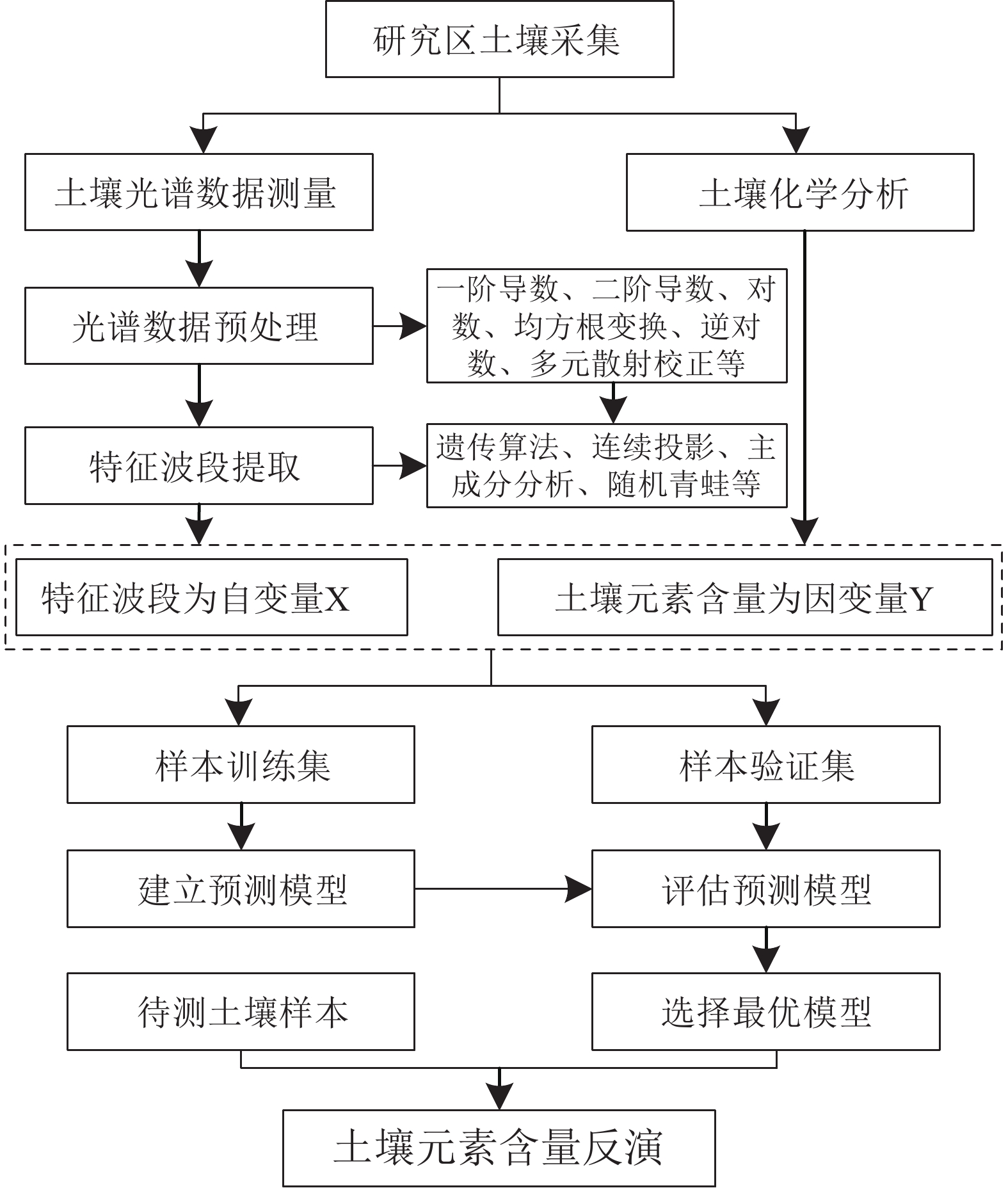 图 1 土壤元素直接定量反演流程图 Fig. 1 Flow chart of direct quantitative inversion of soils elements |